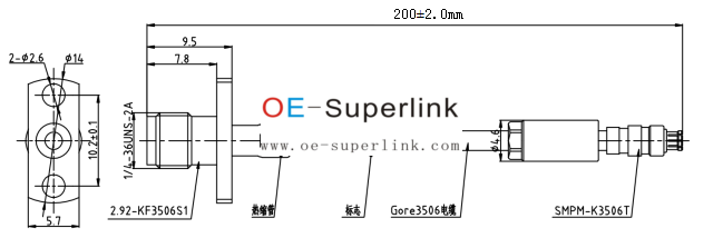 Product SpecificationProduct Mode2.92(F)/GPPO(F)2.92?Female to?GPPO Female?Cable????Unit: mmElectrical & Environmental CharacteristicsImpedance(Ohm)50Insulation